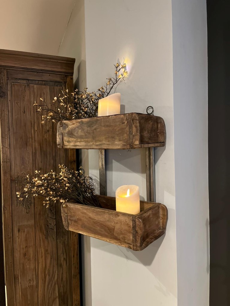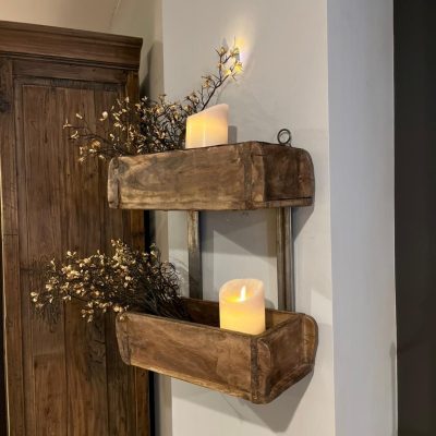 Wall rack, made from wooden stone moulds. Also available in other sizes.