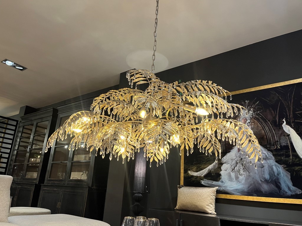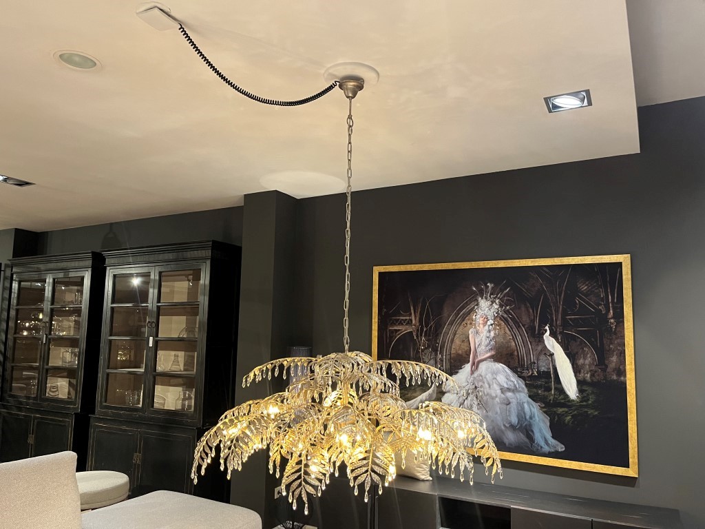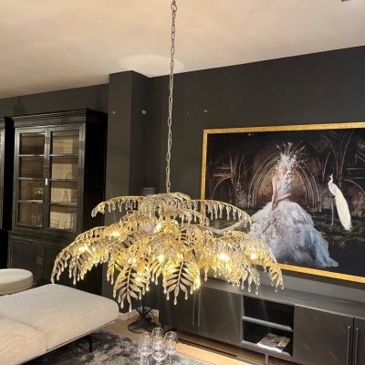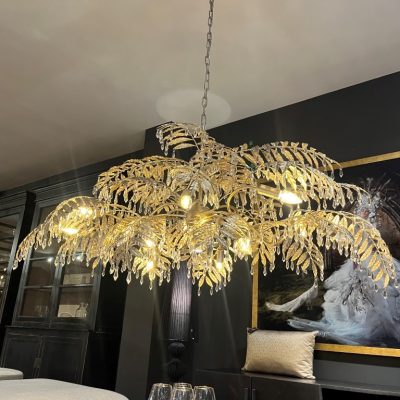 Chandelier ‘Bellagio’, made of artisanal silver. Also available in color, artisanal bronze or in round.