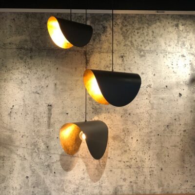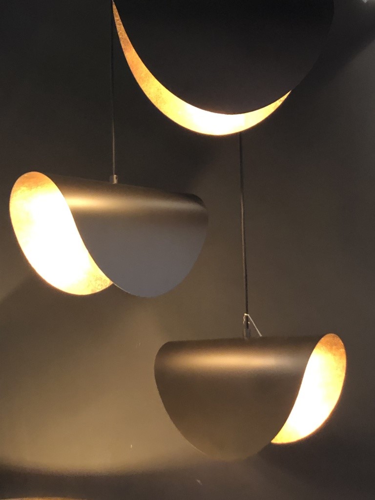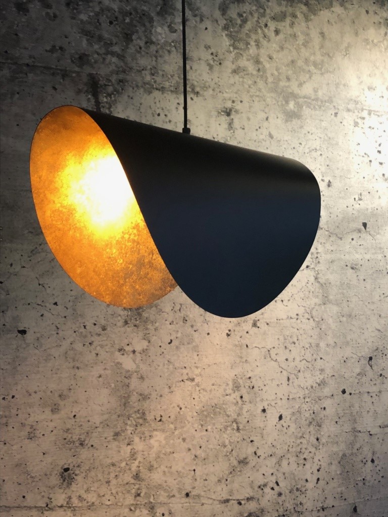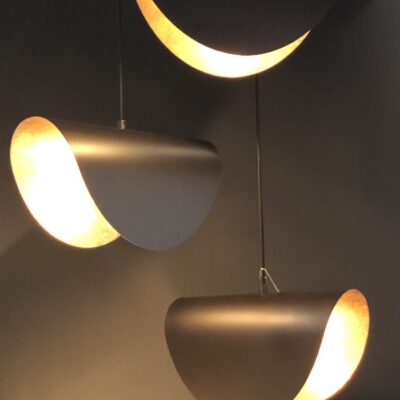 Pendant lamp ‘Oyster Deluxe’ with 2 light sources and a spot that shines downwards.