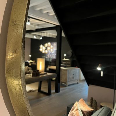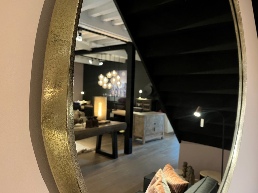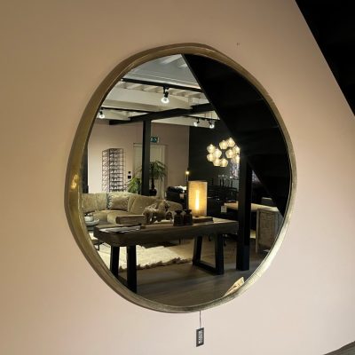 Round mirror ‘Cuba’ with an aluminum frame. Also available with a diameter of 70 cm.