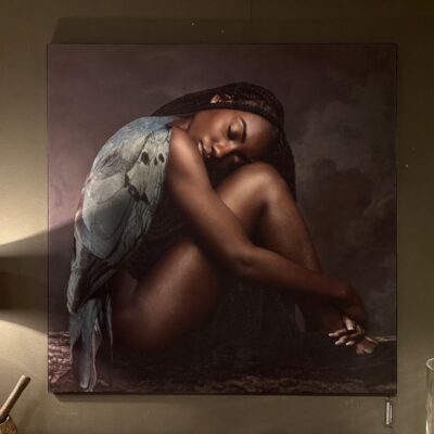 Wall decoration ‘Birdlady’, printed on a velvet canvas. Also available in other dimensions.