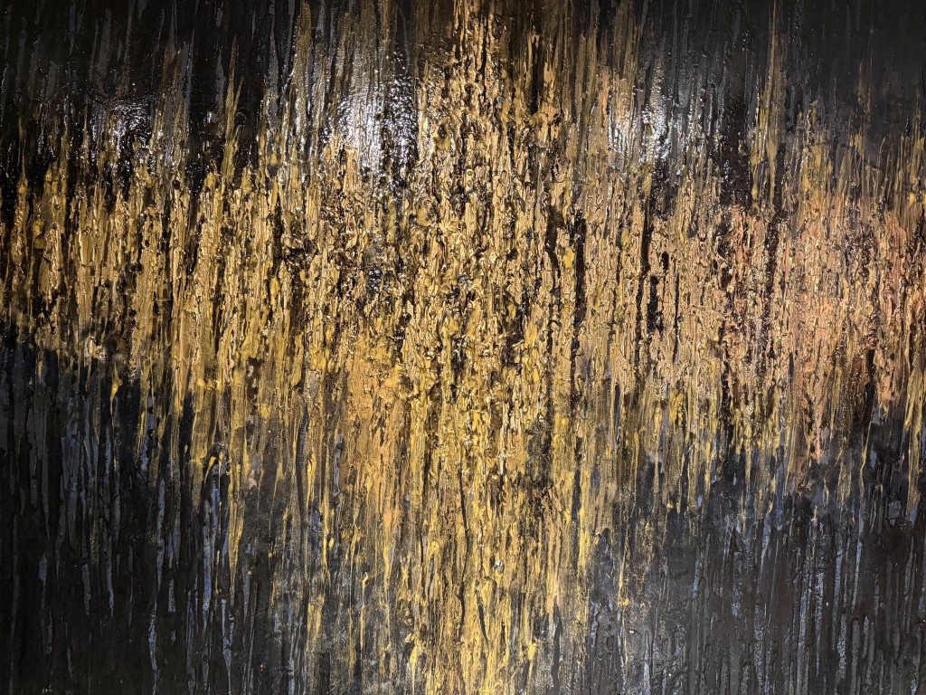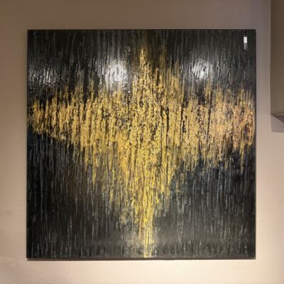 Handmade painting ‘Golden Stripes’, made of a canvas with epoxy and gold leaf.