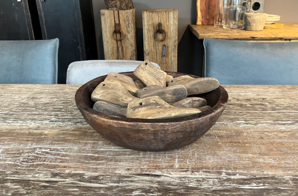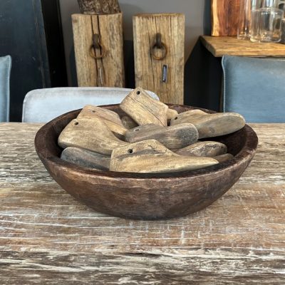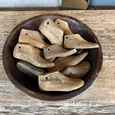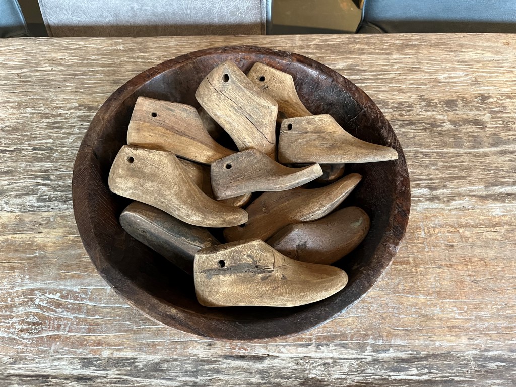 Chaussure ancienne se lit en différentes tailles et formes, en bois dur.