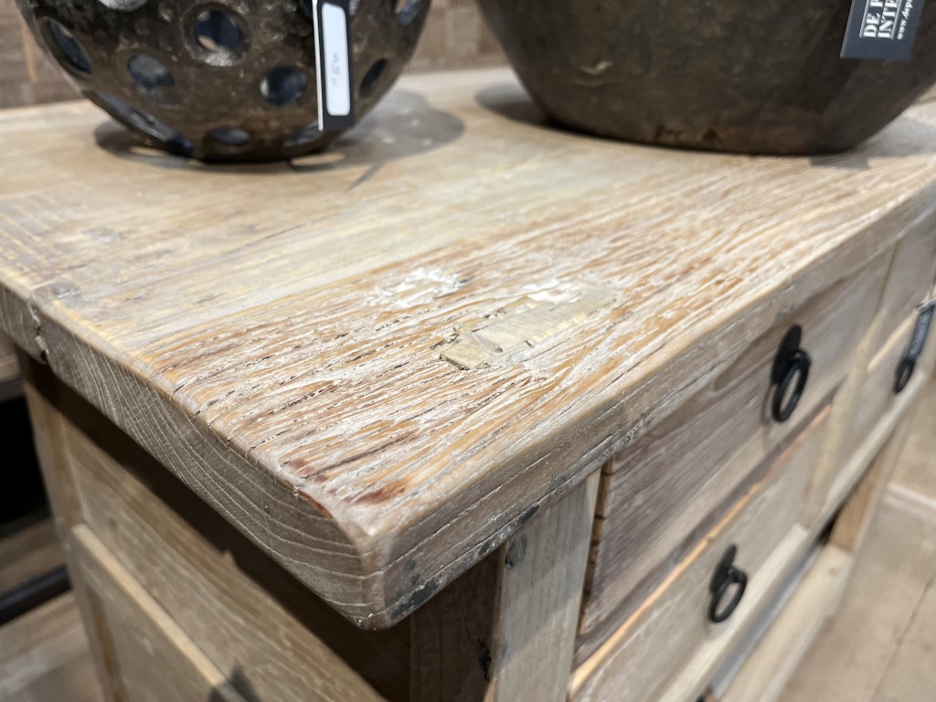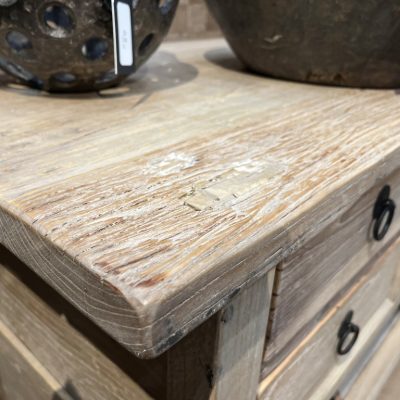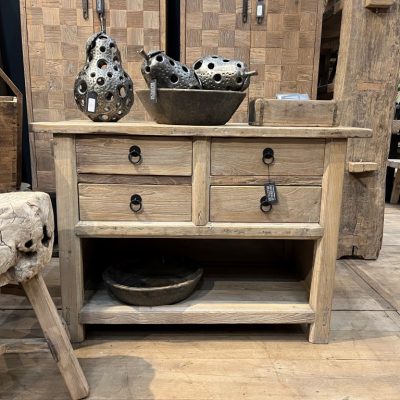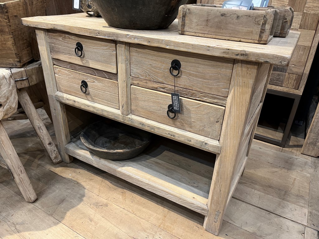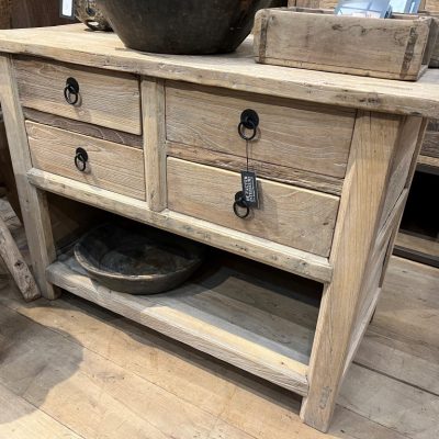 Meuble à tiroirs rural ‘London’ avec 4 tiroirs et un compartiment ouvert, en bois d’orme.