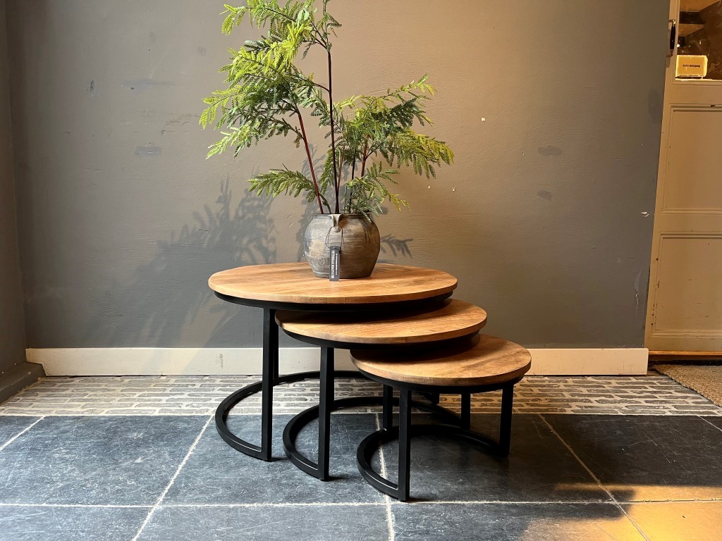 Lot De 3 Tables Basses Rondes En Bois De Manguier