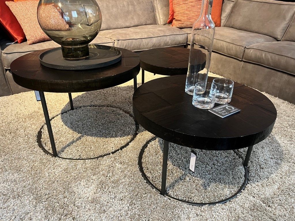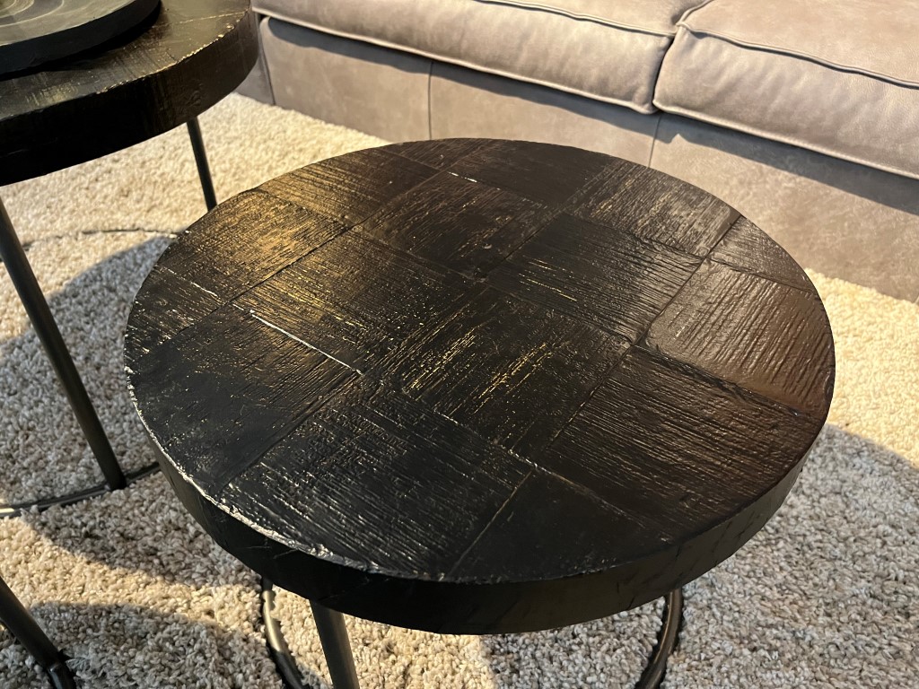Tables basses noires à carreaux de différentes tailles. Les tables basses en bois dur sont disponibles en :