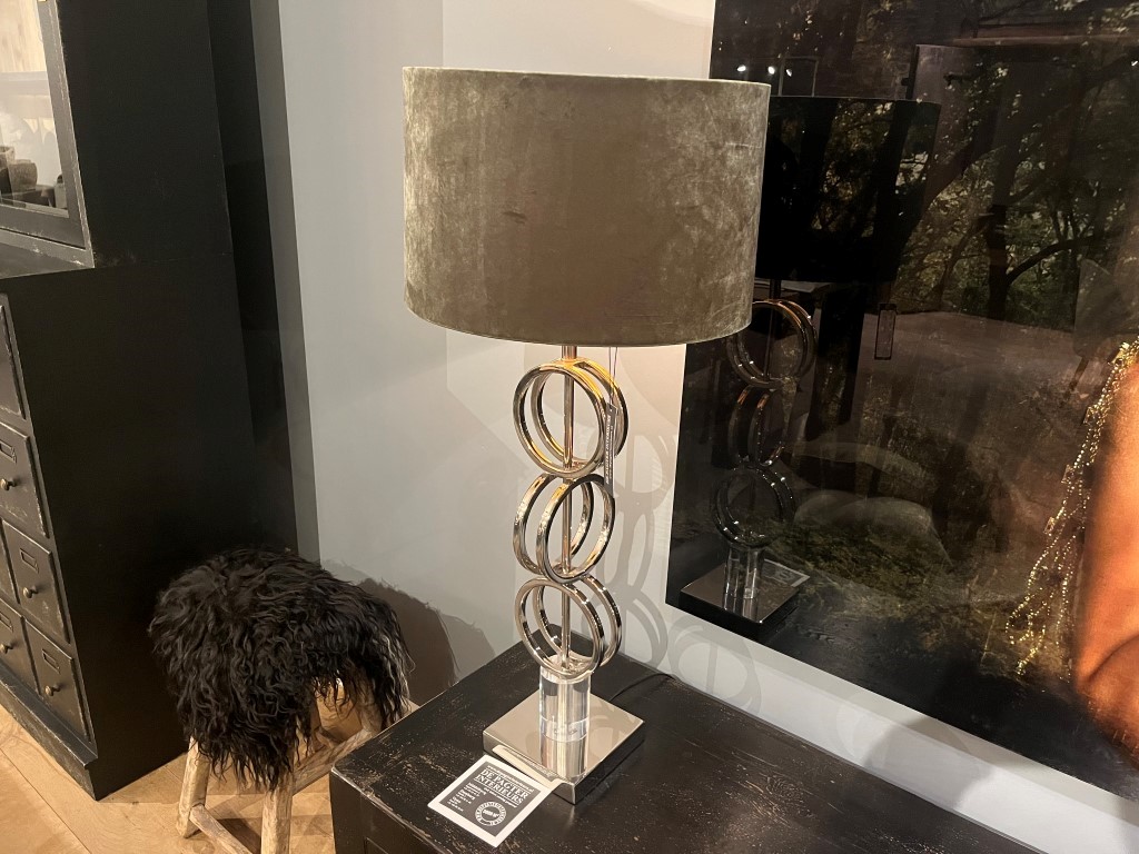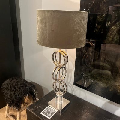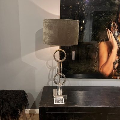 Lampe ‘Albany’ avec une base en aluminium et un abat-jour en tissu velours.
