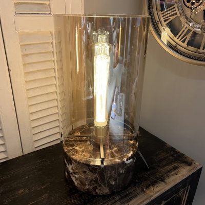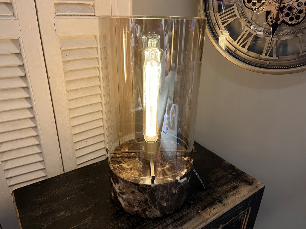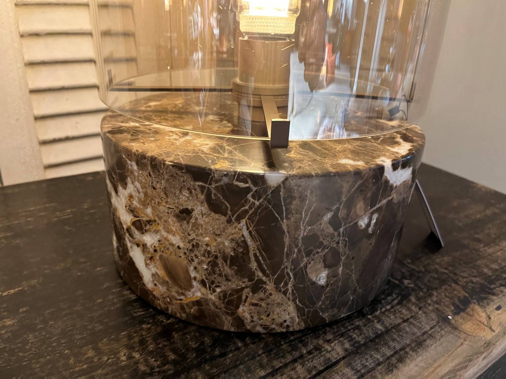 Lampe ‘Marble’ de la marque Be Eve. La lampe à intensité variable est en marbre et en verre.