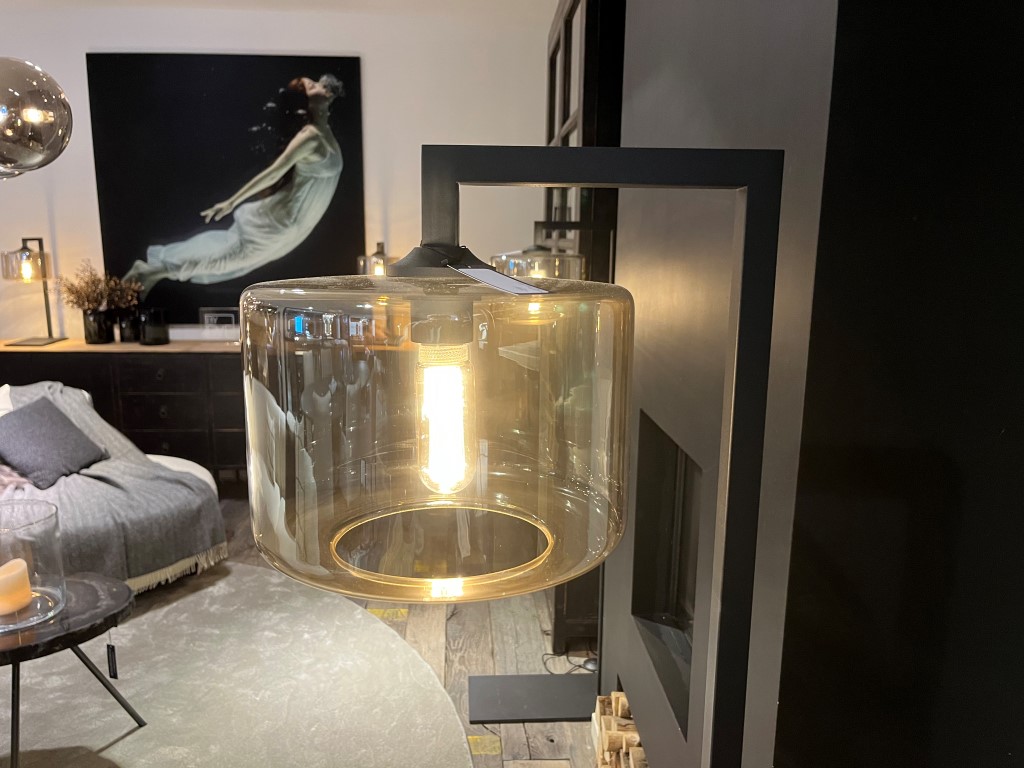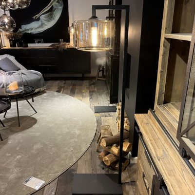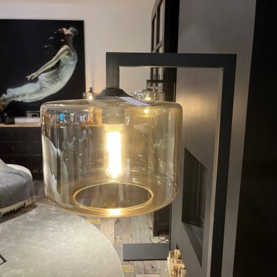 Lampe ‘Maxi Stand’ de la marque By Eve. La lampe est en métal et en verre et est dimmable.