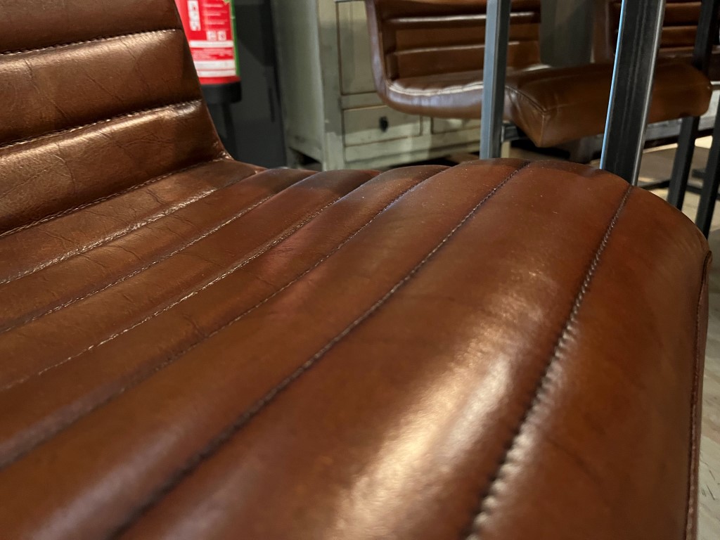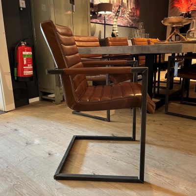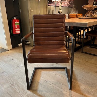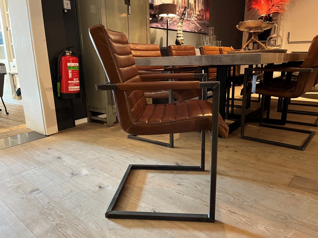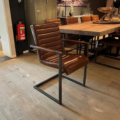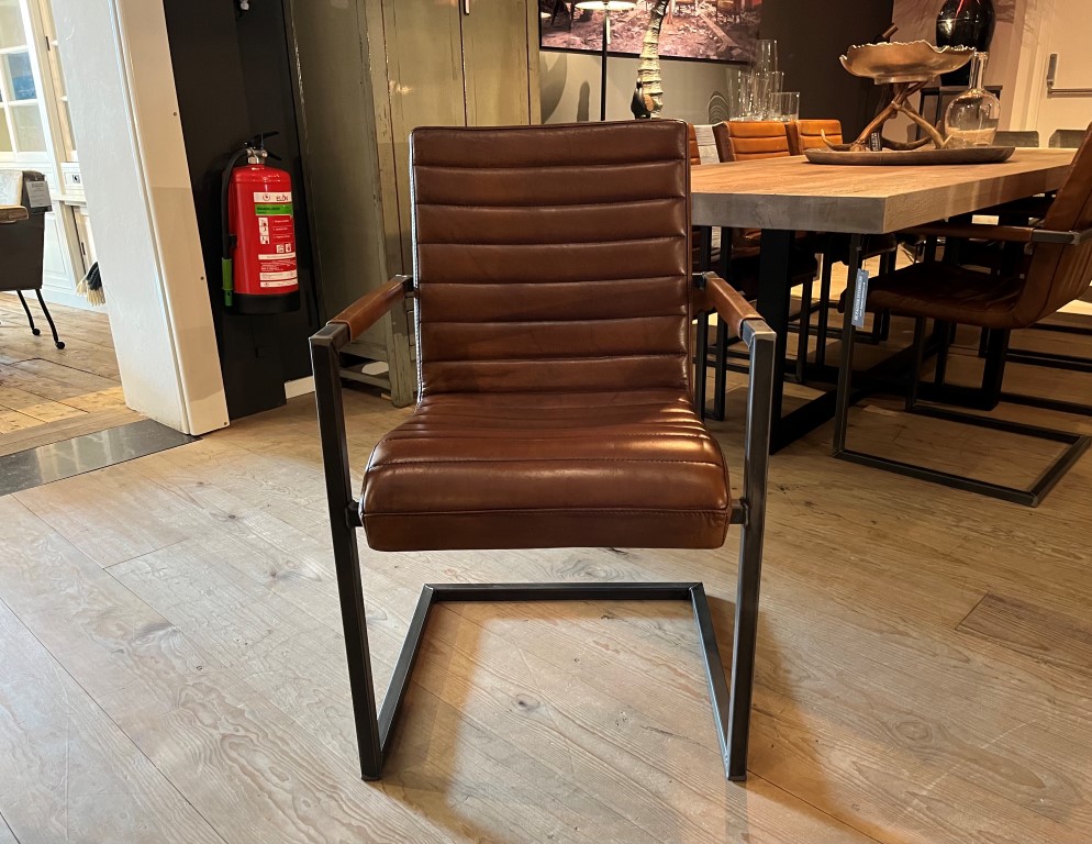 Chaise de salle à manger Sabina avec accoudoir, en cuir : buffle vintage – marron clair.