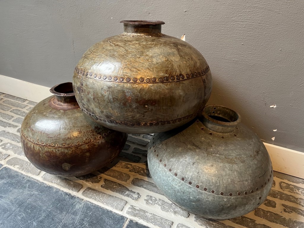 Vieilles cruches d’eau en métal. Attention : chaque pichet est unique.