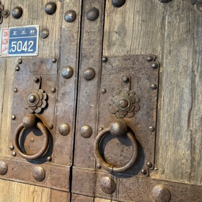 Porte chinoise ancienne, en bois d’orme. Plusieurs en stock, tous différents en apparence et en dimensions. Renseignez-vous sur le stock actuel !