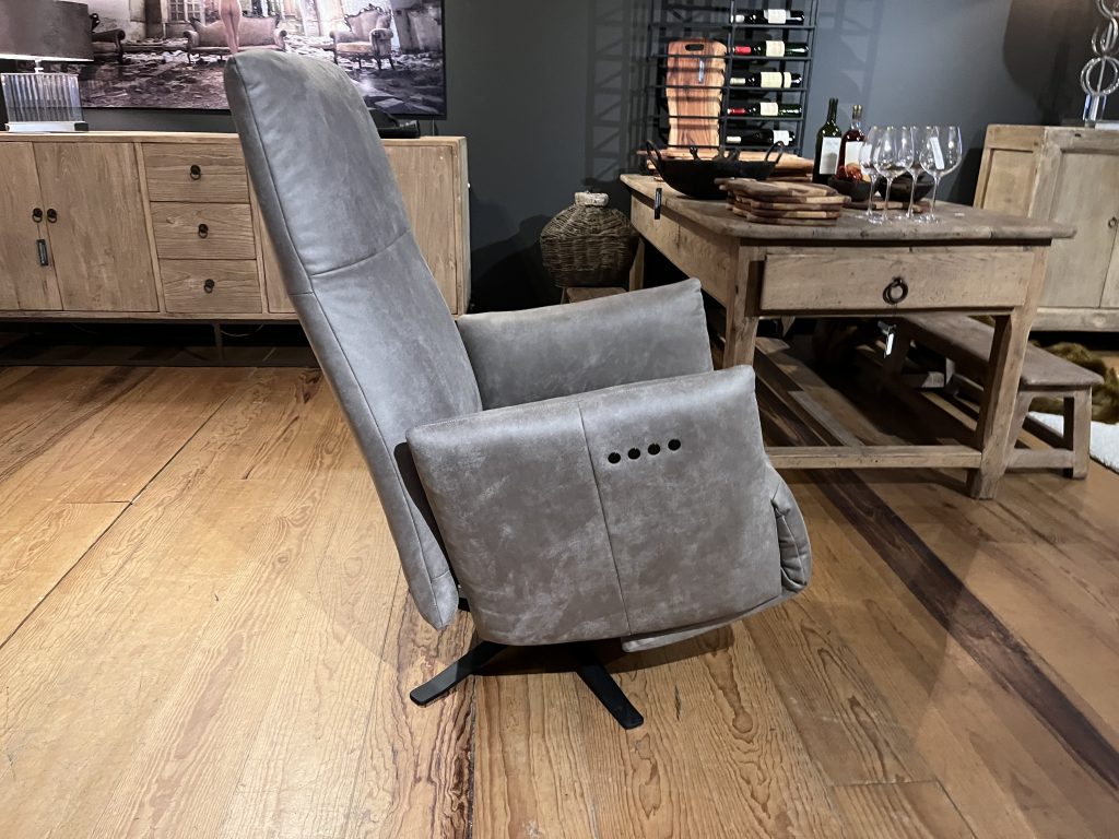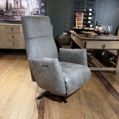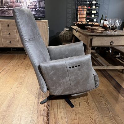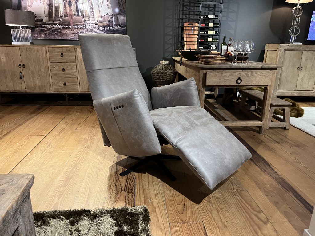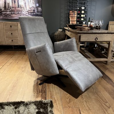 Fauteuil de luxe avec repose-pieds et dossier réglables électriquement qui peuvent être actionnés par des boutons tactiles.