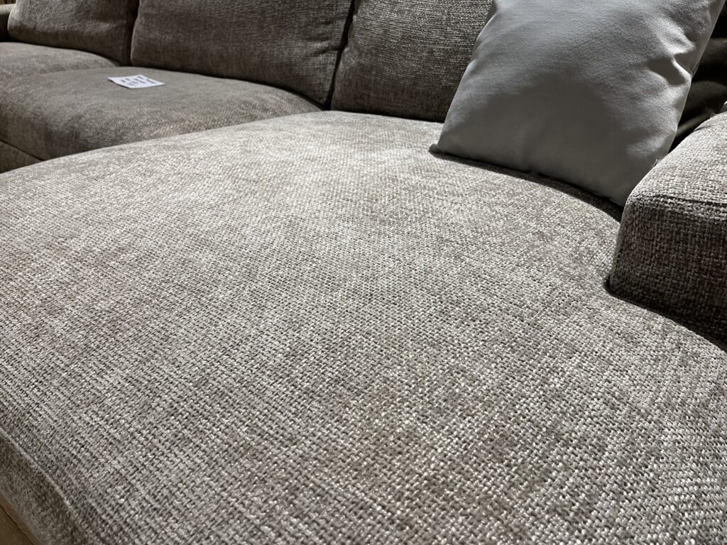 Modèle illustré : 3 places avec accoudoir à gauche et chaise longue grande à droite.