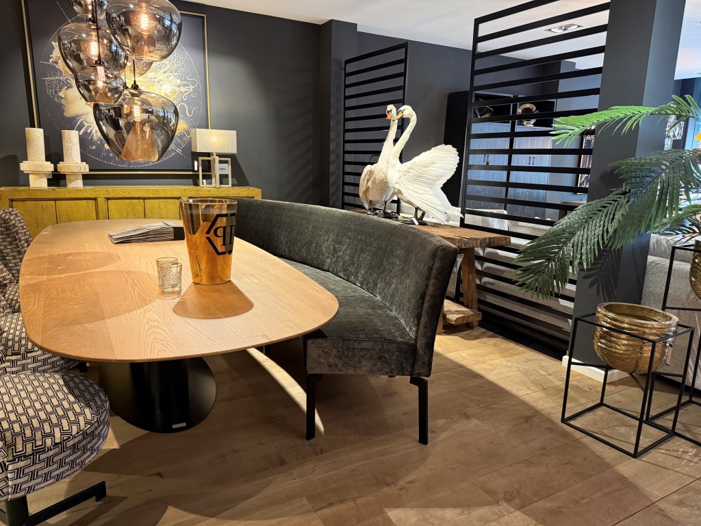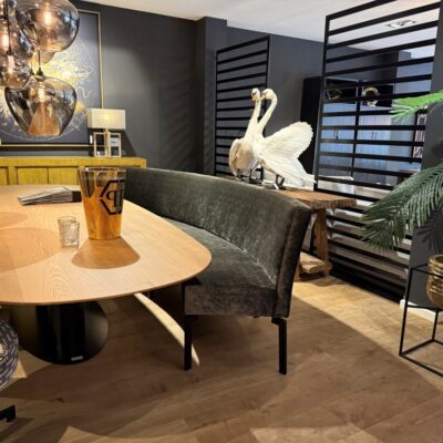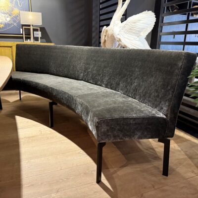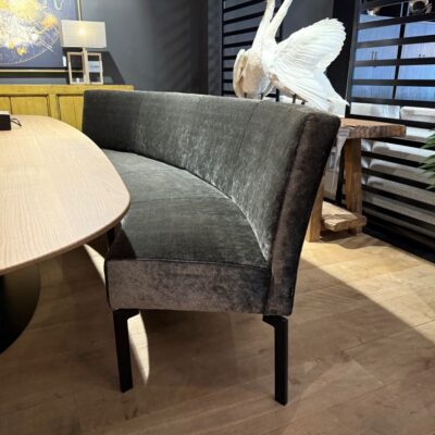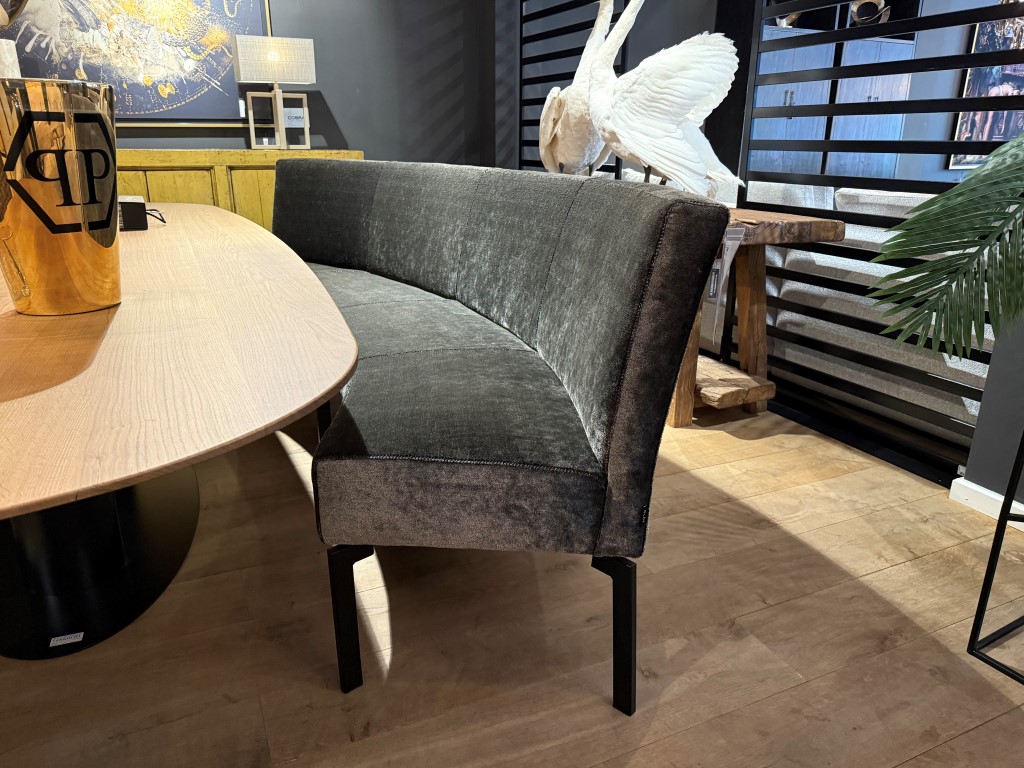 Canapé de salle à manger Diego. Modèle présenté : 280CM Ovale avec pieds en métal.