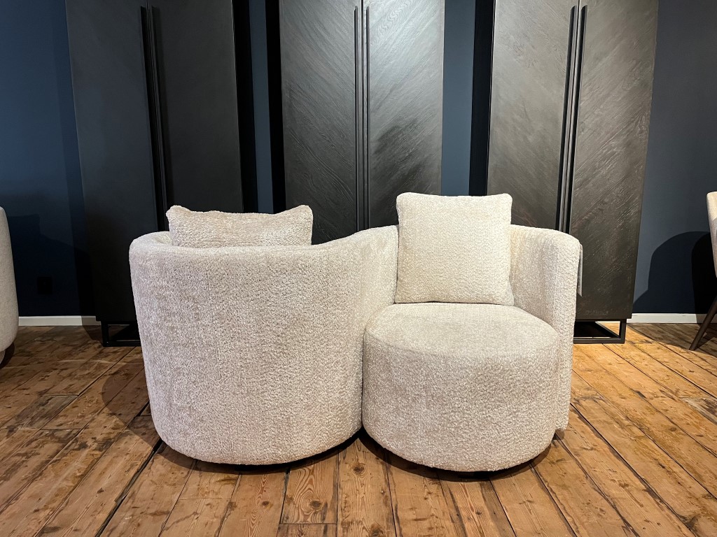 Armchair Duo, un fauteuil tête-à-tête. Fabriqué en tissu Ti Amo Pearl (A).