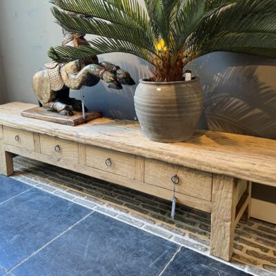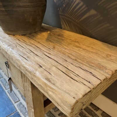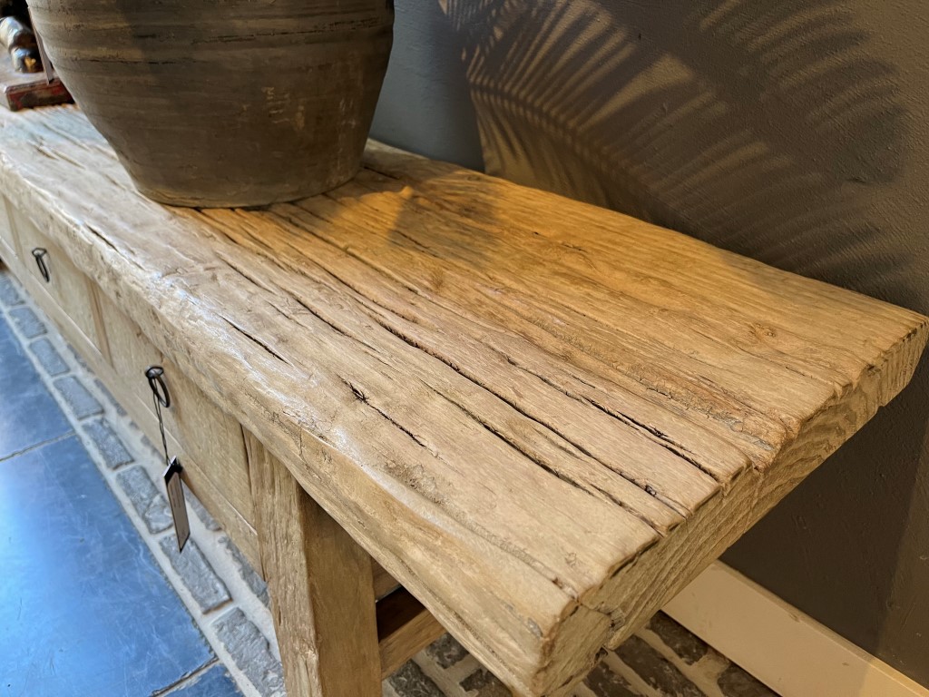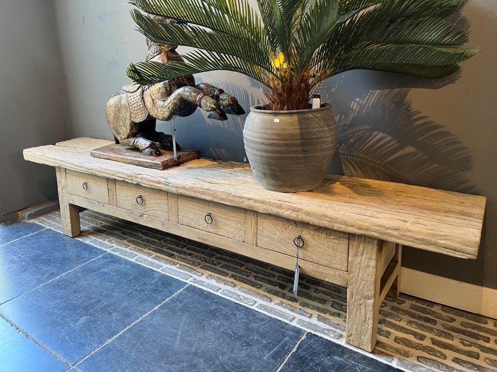 Banc grossier à 4 tiroirs, en bois d’orme. Également disponible dans d’autres tailles.