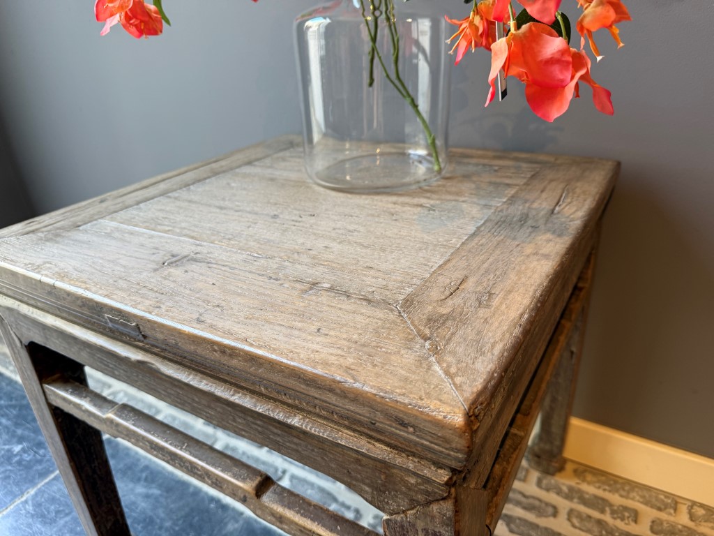 Table d’appoint chinoise ancienne, en vieux bois de pin.