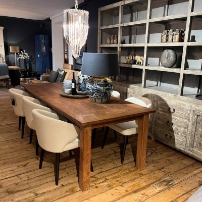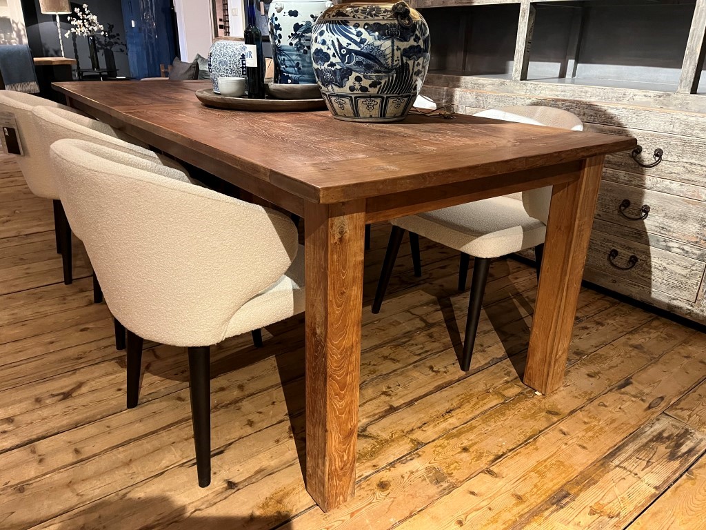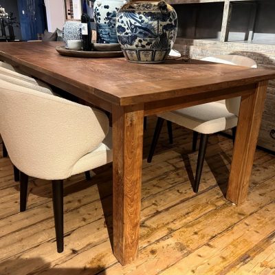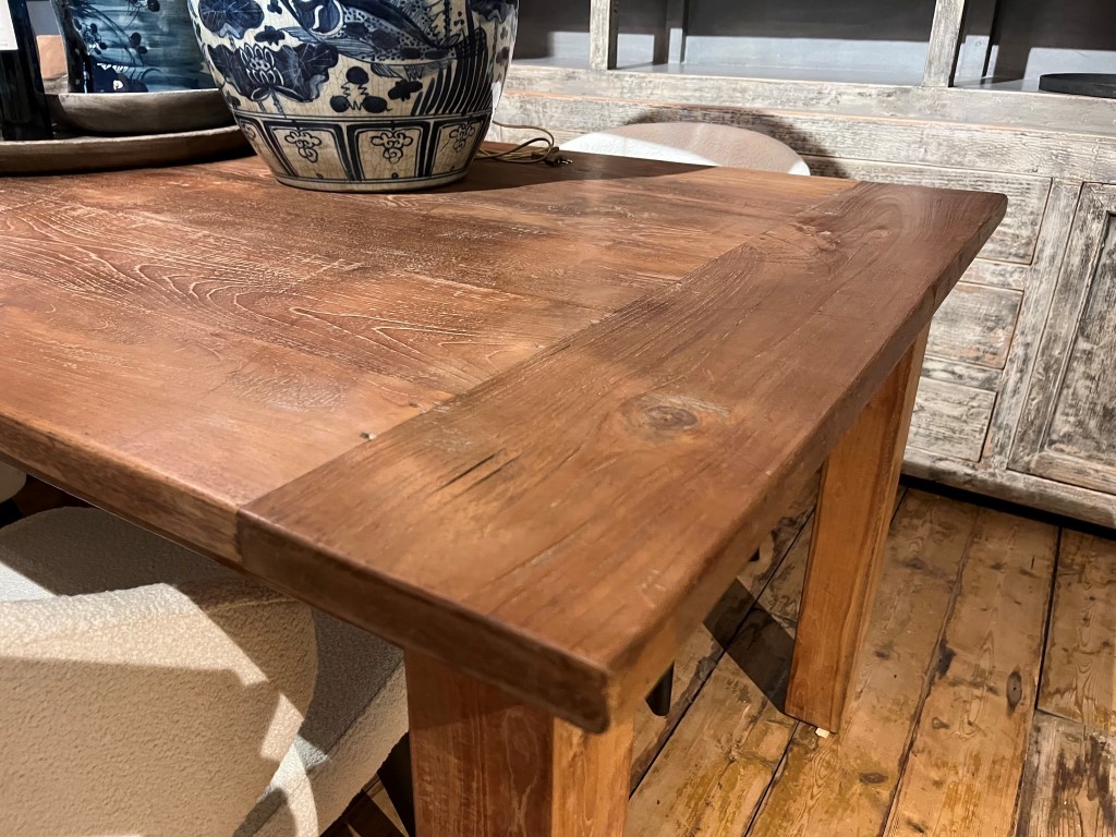 Table en teck avec 4 pieds en bois. La table est disponible dans les tailles suivantes :